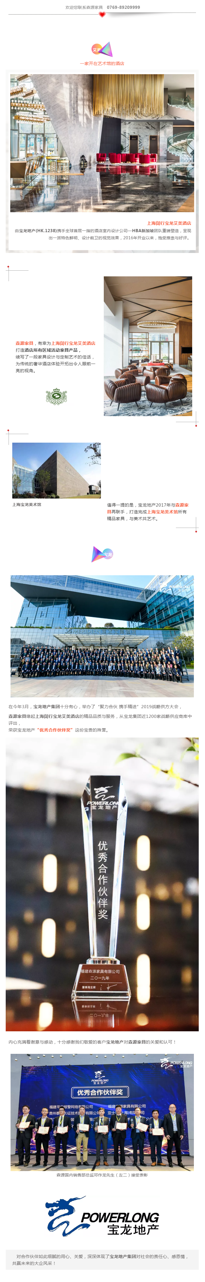 森源家具緣起上海閔行寶龍艾美酒店的精品品質與服務,從寶龍集團近1200家戰略供應商庫中評出,