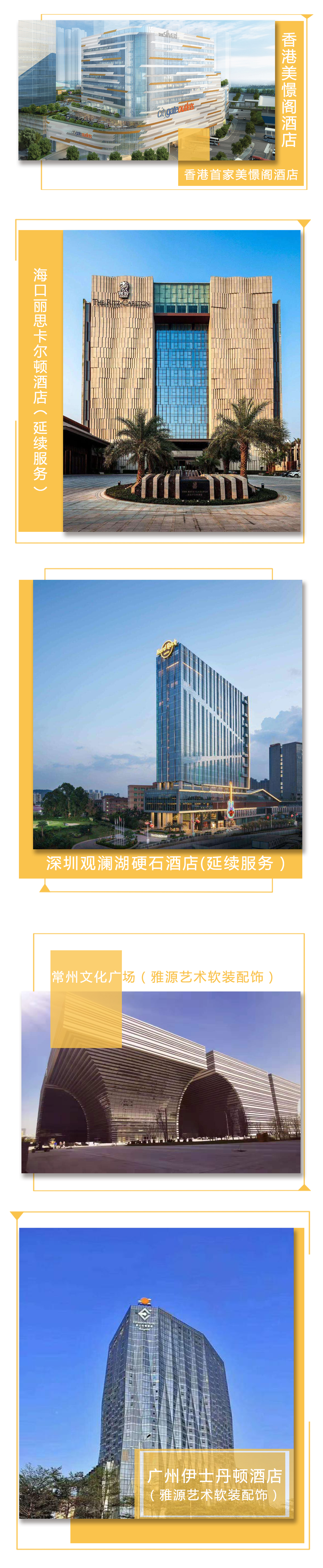 北京釣魚臺國賓館,中國 上海蘇寧寶麗嘉酒店,中國 深圳平安柏悅酒店,中國 杭州西子賓館,中國